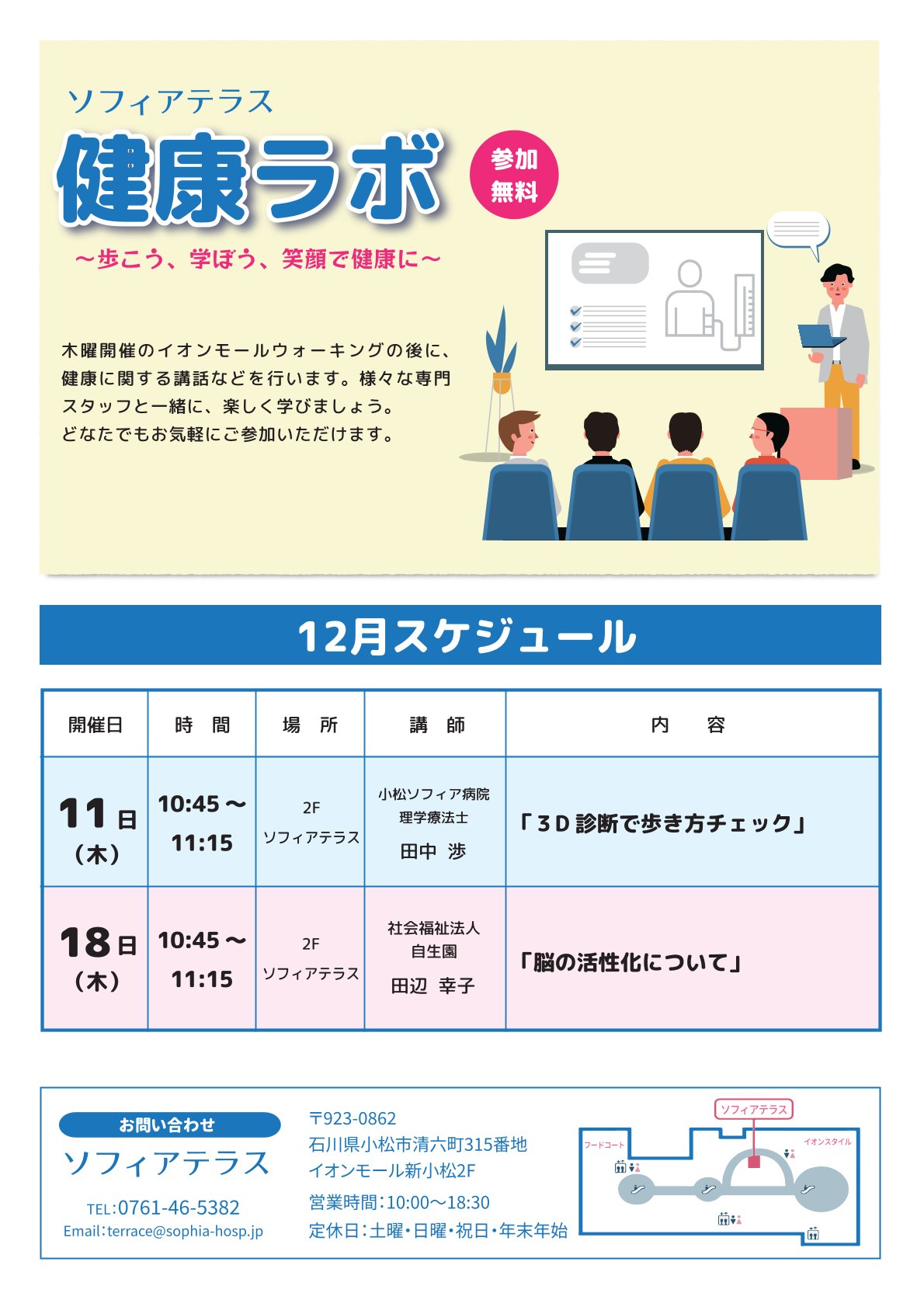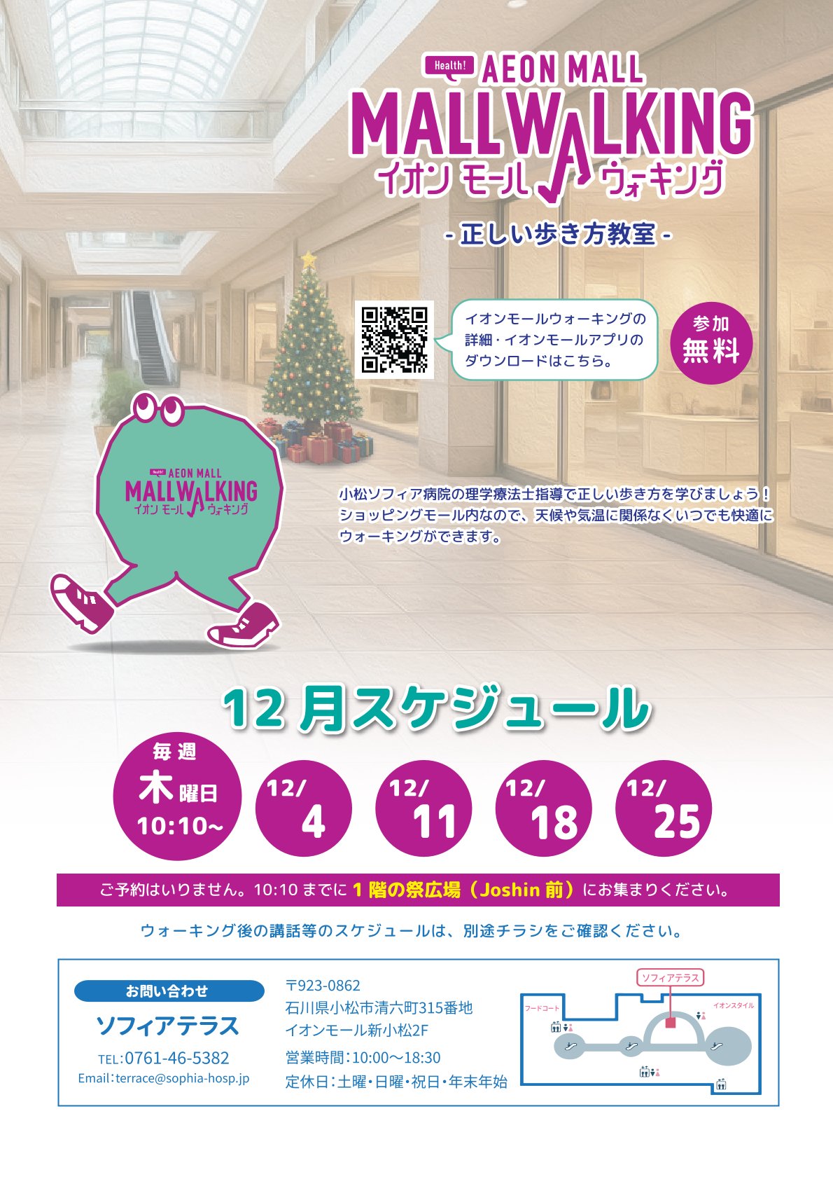 毎週木曜開催のイオンモールウォーキングの後に、健康に関する講話などを行います。