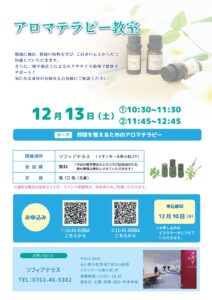 精油に触れ、精油の特性を学び、ご自身の心とからだで体感していただきます。