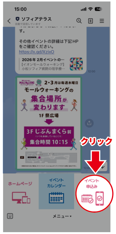 LINEからイベントを申し込むことができます。