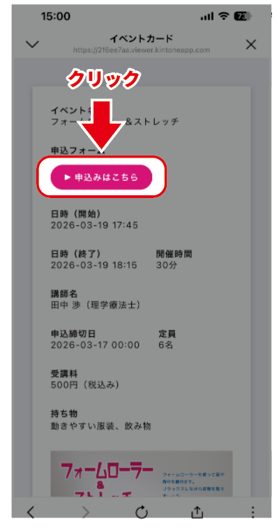 ②受付中のイベントの画像が表示されるので、