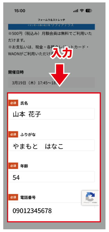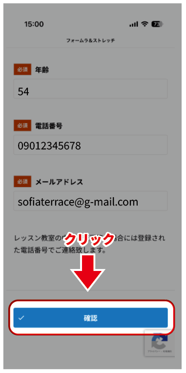 ③申込フォームへ移動します。
