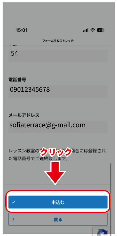 ⑥最後に「申込む」のボタンを押して完了です。